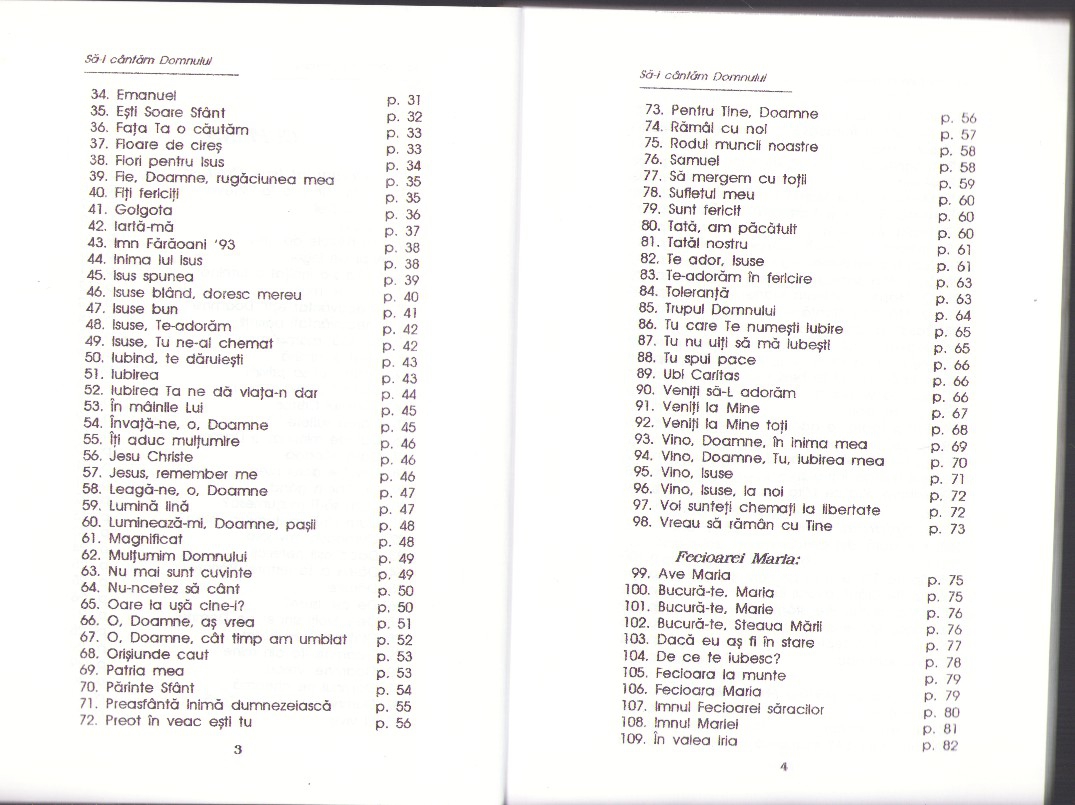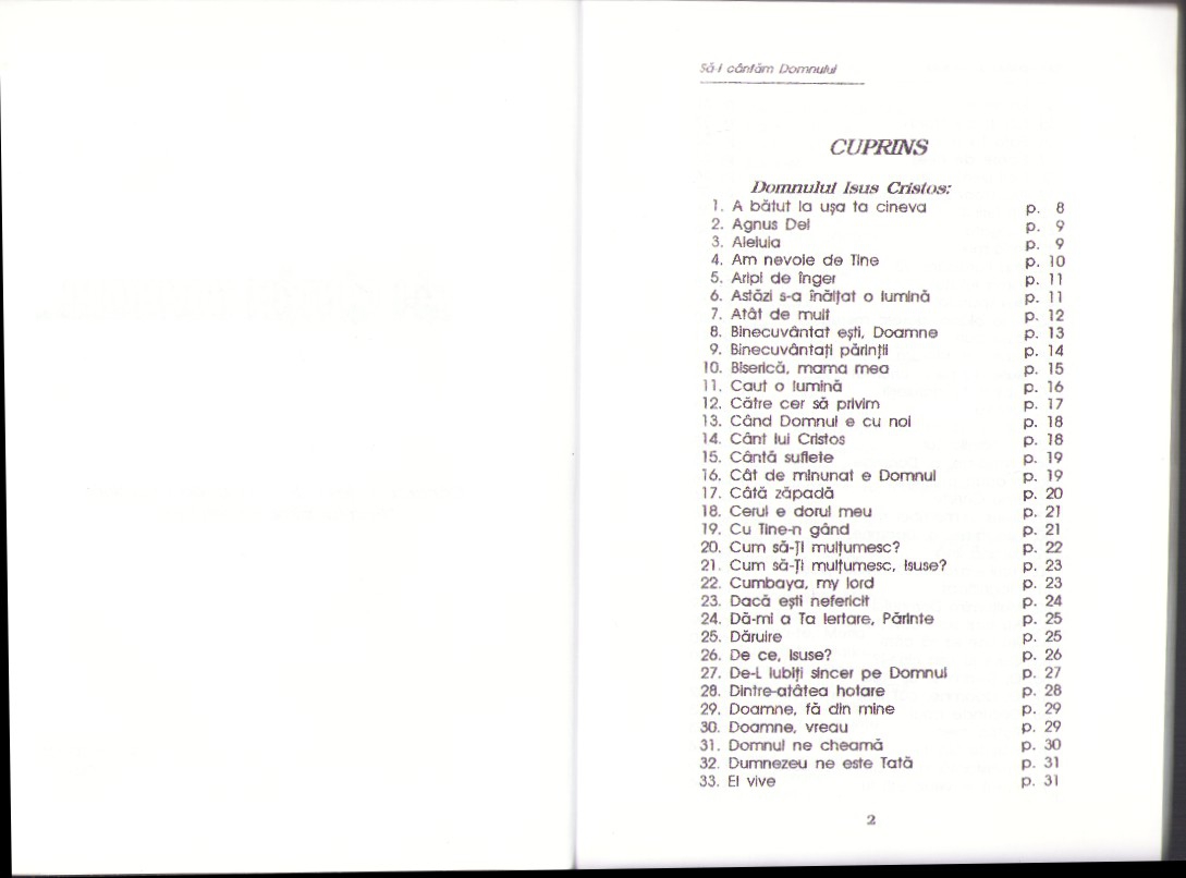 Să-i cântăm Domnului, cântece culese de Grupul de rugăciune Triumful Inimii Neprihănite, 2000.