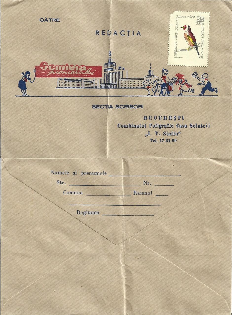 Scânteia pionierilor, plic autoadresat, necirculat.