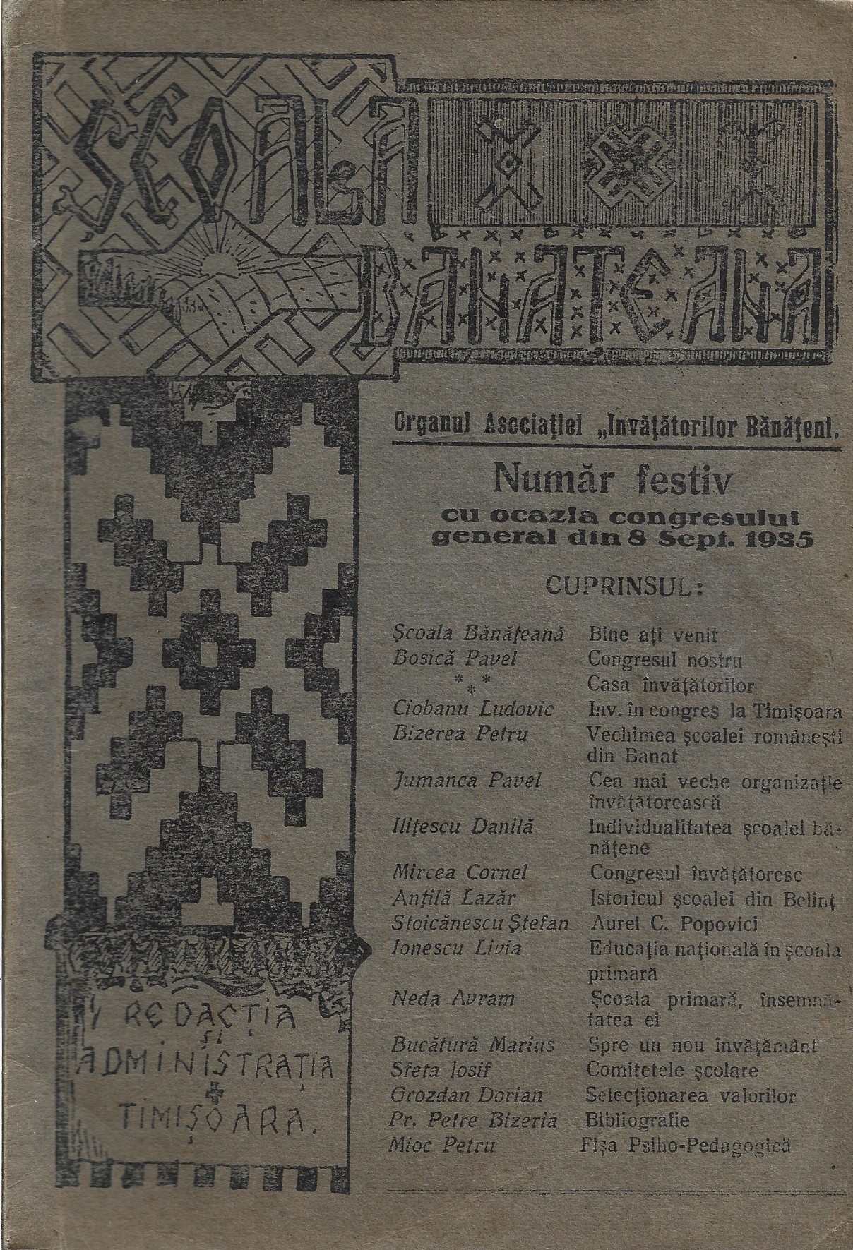 Școala bănățeană, organul Asociației Învățătorilor Bănățeni, număr festiv cu ocazia congresului general din 8 Sept 1935.