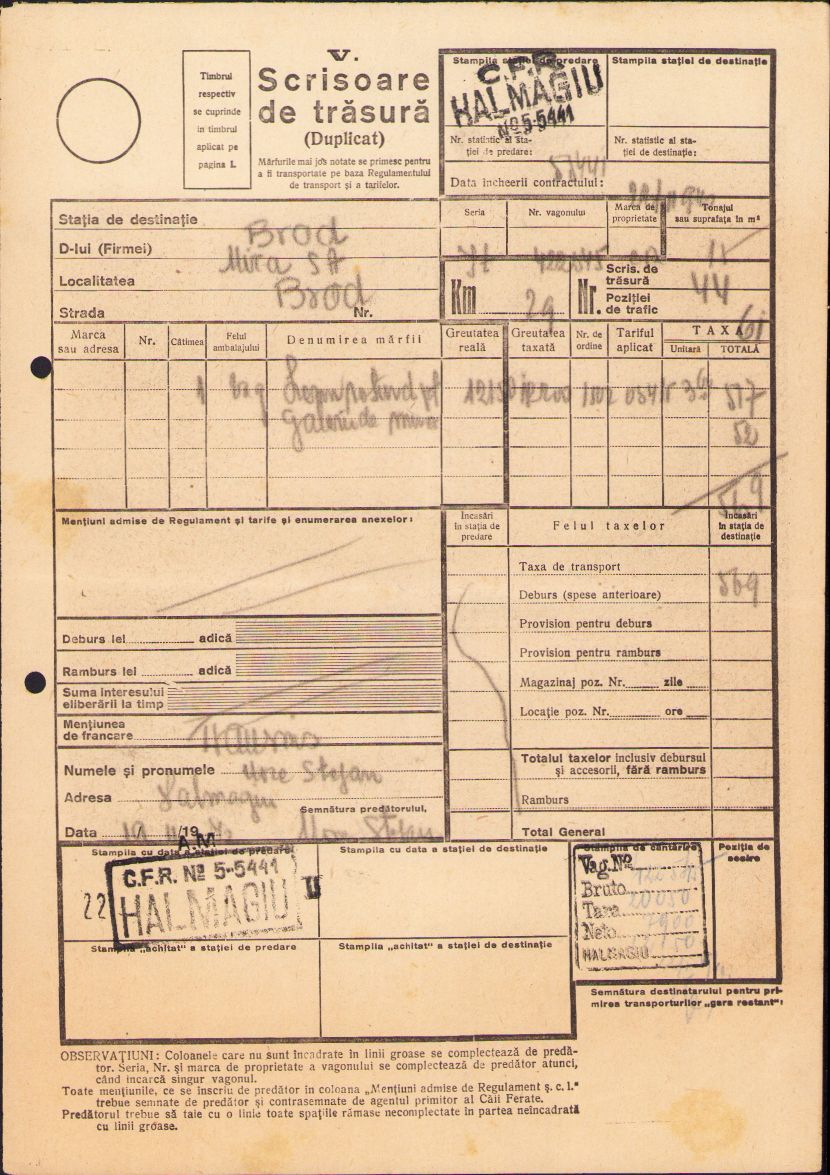 Scrisoare de trăsură Societatea Mica Brad, județul Hunedoara – Hălmagiu, județul Arad, 1940