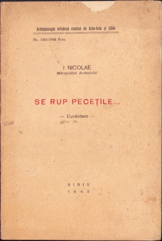 Se rup pecețile – cuvântare de Nicolae, Mitropolitul Ardealului, la trecerea preoților greco-catolici la biserica ortodoxă, 1948, Sibiu.