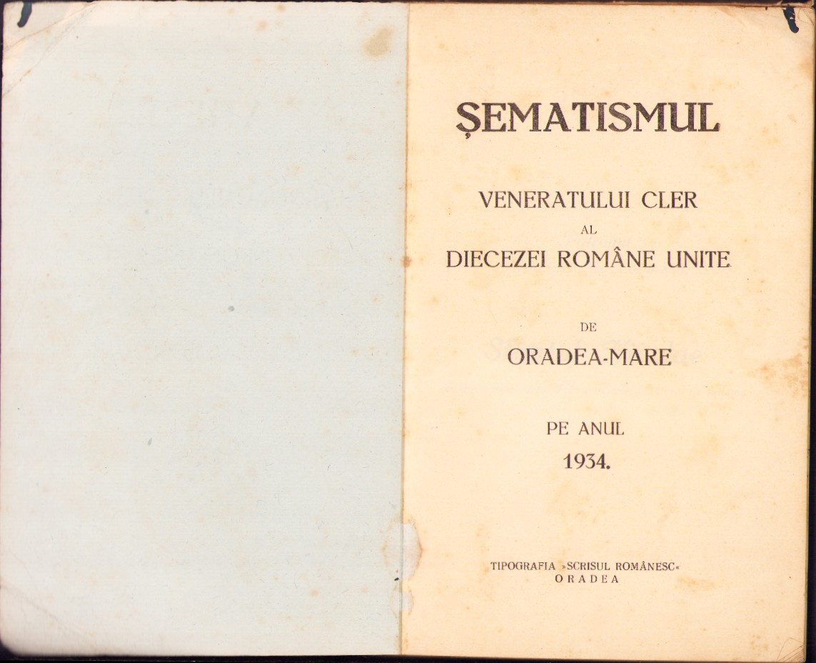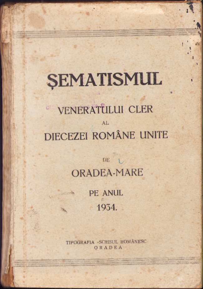 Şematismul veneratului cler al Diecezei Române Unite de Oradea-Mare pe anul 1934, Tipografia Scrisul Românesc, Oradea.