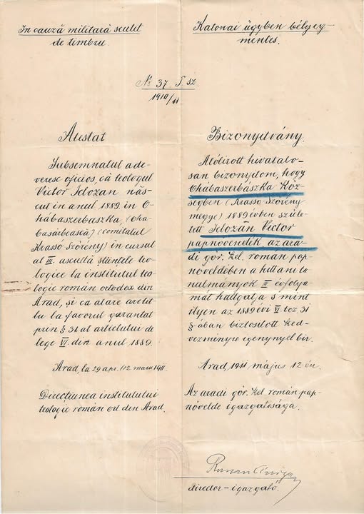 Semnătura episcopului de Oradea, Roman Ciorogariu, pe un document din anul 1911, Arad, din perioada în care își desfășura activitatea în acest oraș.