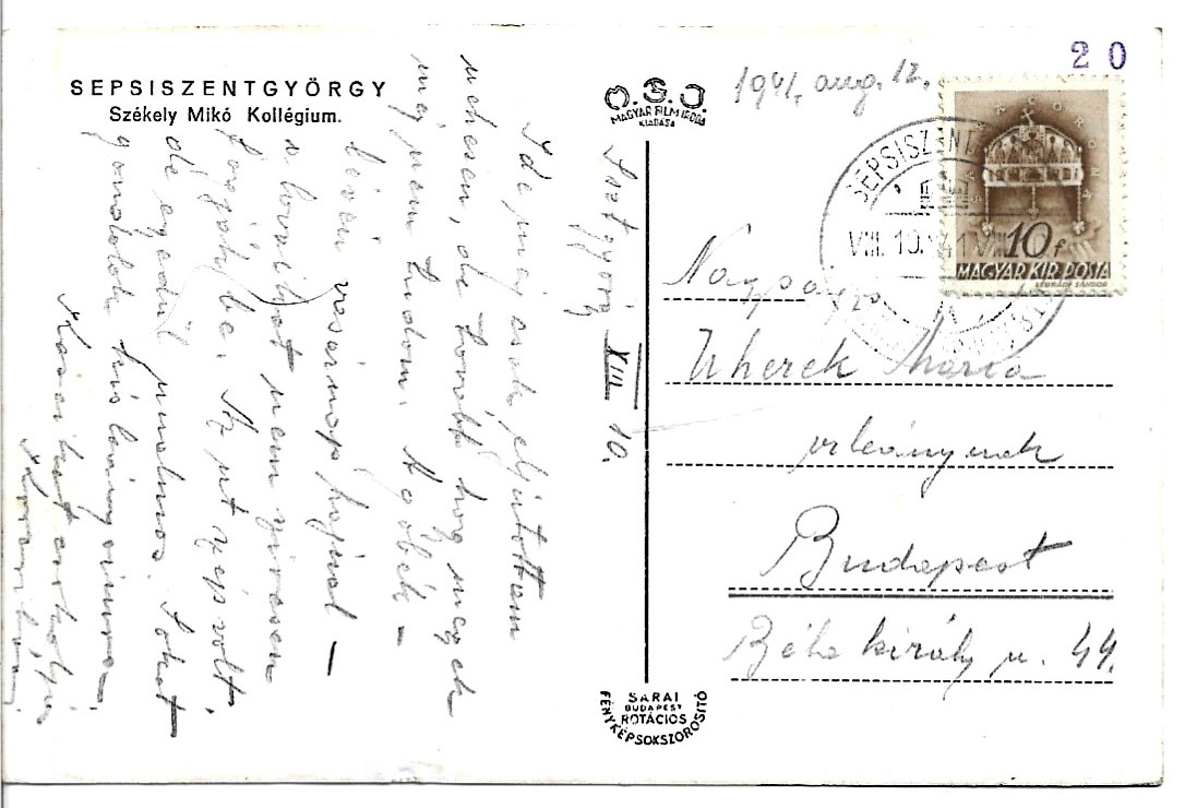 Sepsiszentgyörgy, Székely Mikó Kollégium, carte poștală, Sfântu Gheorghe.