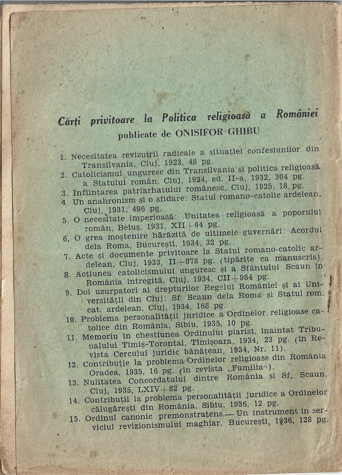 Sfinții unguri în România – Eliminarea lor din cărțile liturgice, de către Papa – Măsurile pe cari trebue să le ia Românii, drept urmare a acestei dispoziții de Onisifor Ghibu, 1936.