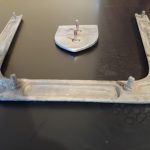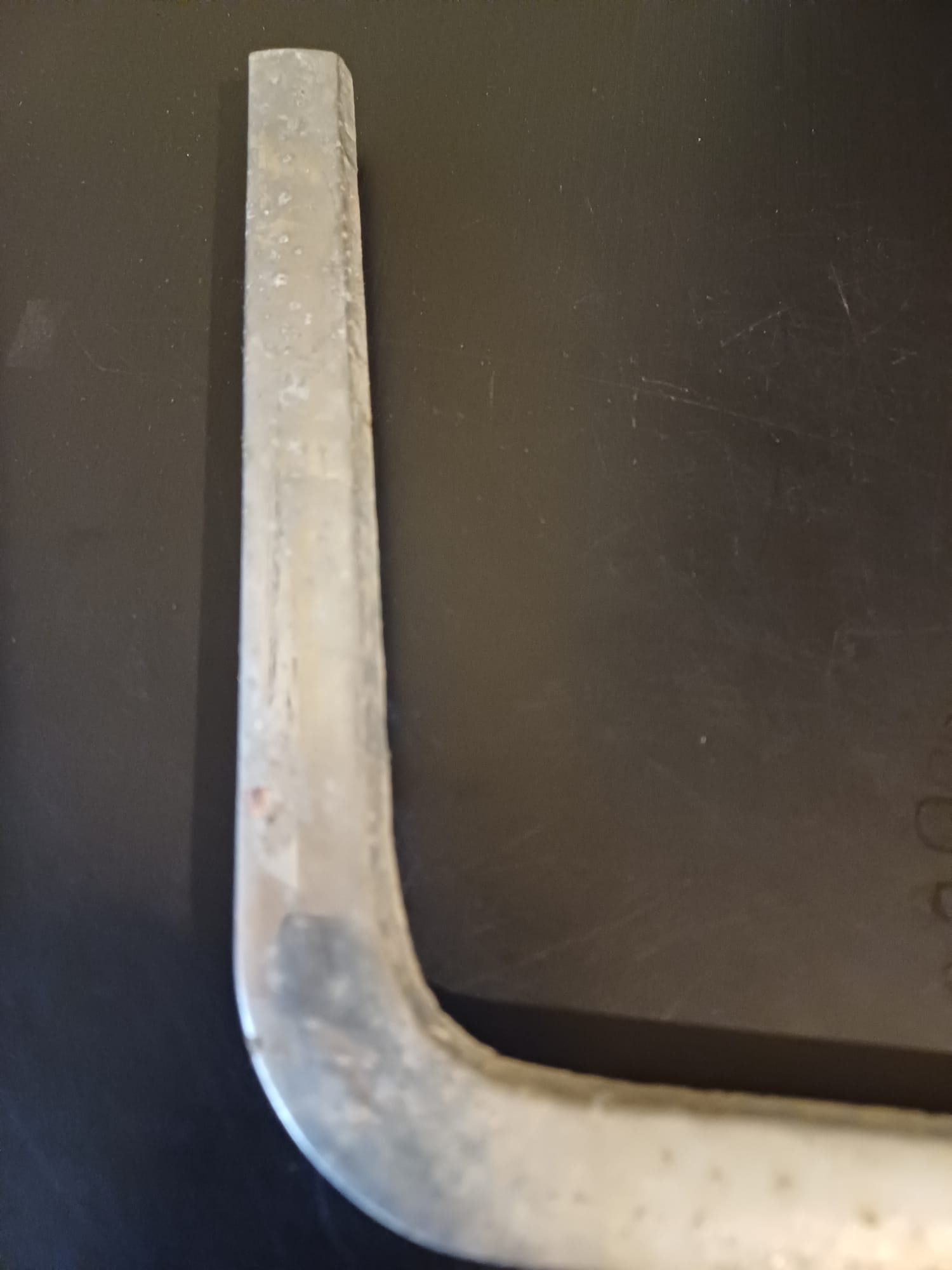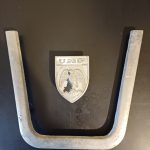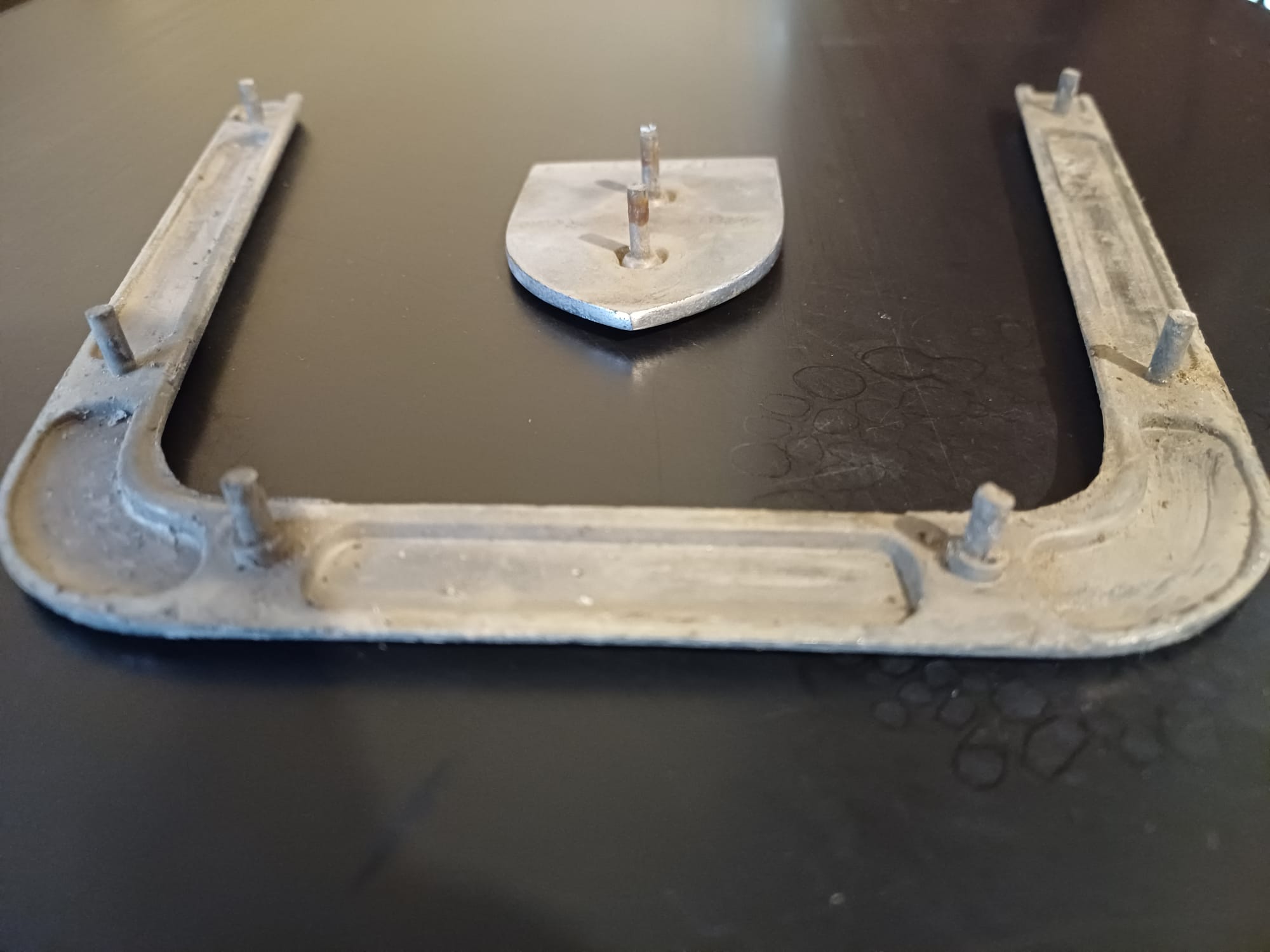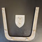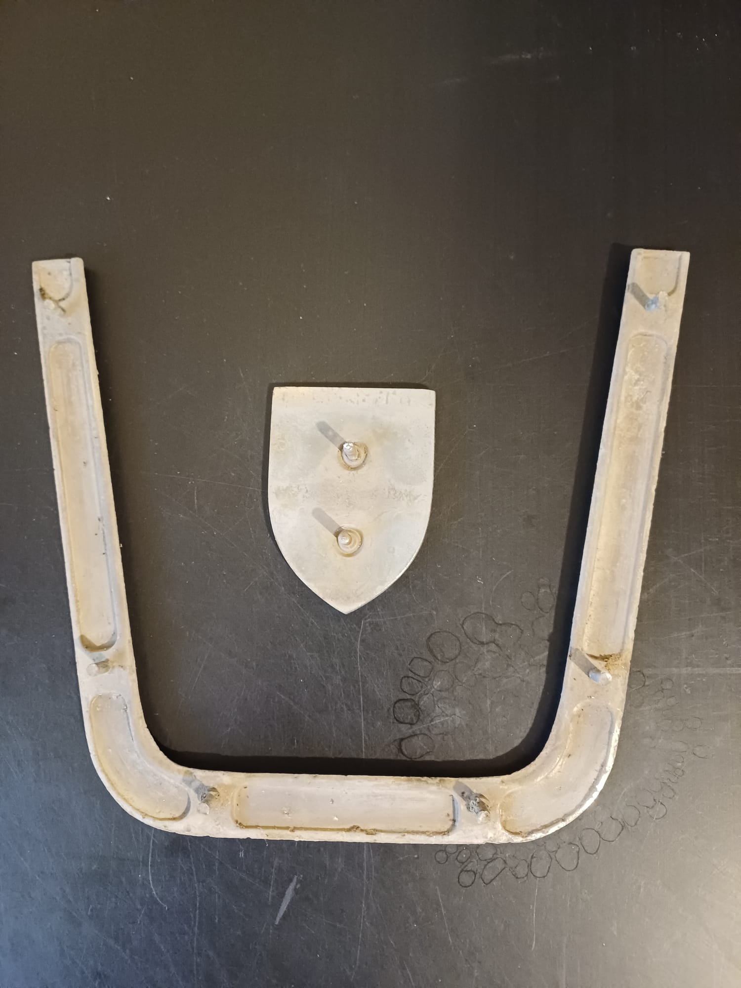 Sigla nu mai are vopseaua. Ambele piese au toate piciorușele de prindere.