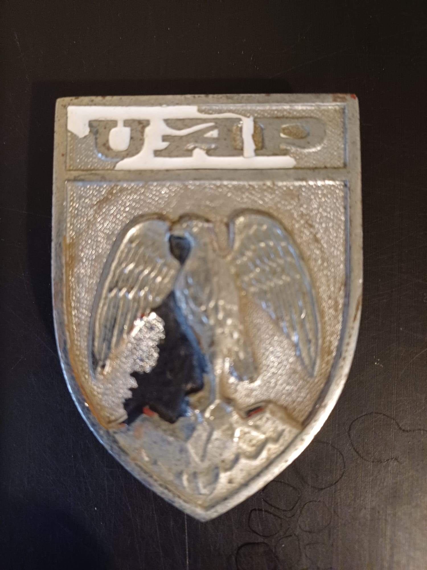 Siglă UAP și ornament mască radiator Dacia, perioada comunistă.