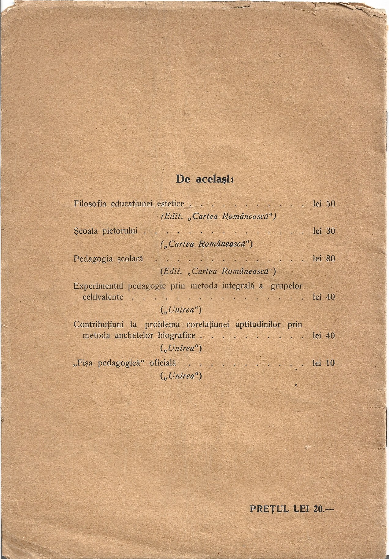 Sistematica pedagogiei științifice de Em M Brandza, 1935.