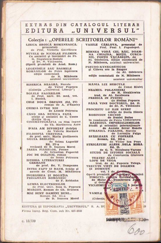 Notă: toate articolele vândute de SC Historiarum SRL sunt articole vechi, care au fost folosite și au urme de utilizare în diferite grade, respectiv pot avea imperfecțiuni. Numărul și varietatea acestora fiind diferite de la un articol la altul, este imposibilă descrierea exactă a tuturor. În cazul în care la primirea articolului calitatea acestuia nu vă mulțumește, beneficiați de garanția de returnare, conform legii românești în vigoare, în termen de 14 zile de la primirea coletului. Pentru condițiile de returnare vezi aici: https://historiarum.ro/retur/
