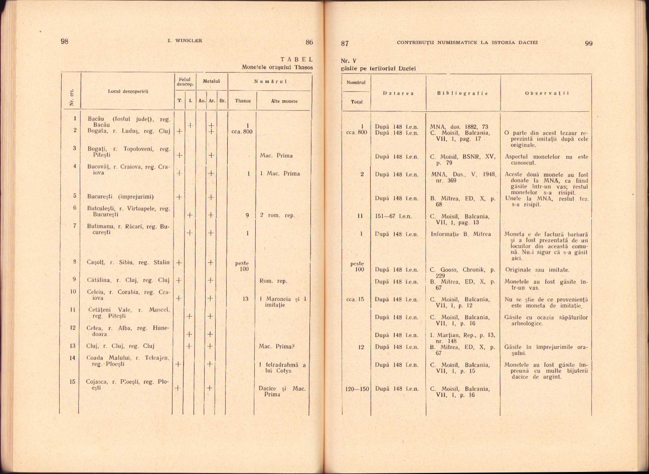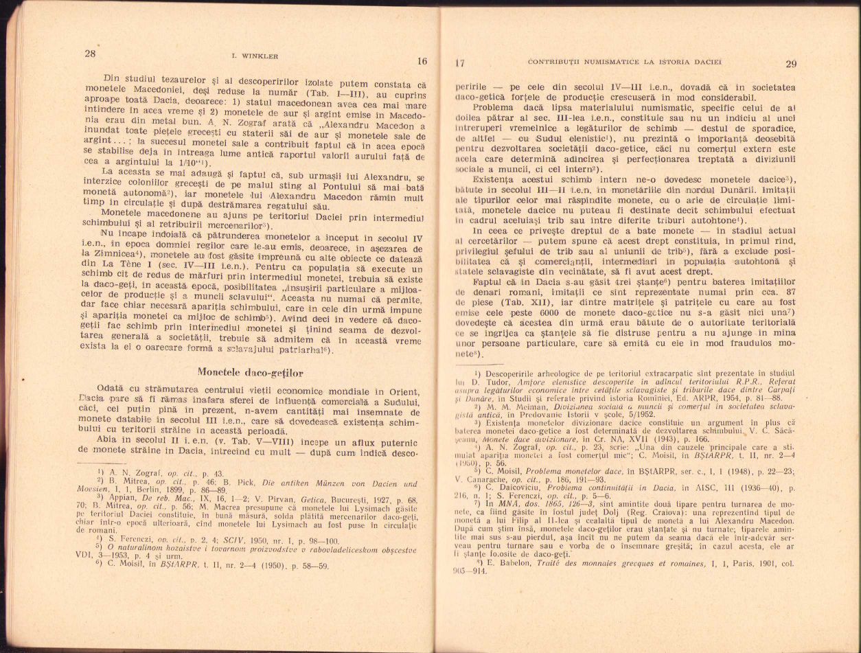 Studii și cercetări științifice, Contribuții numismatice la istoria Daciei de I Winkler, 1955, Editura Academiei RPR, cu dedicația autorului, manu propria, pentru D Radu.