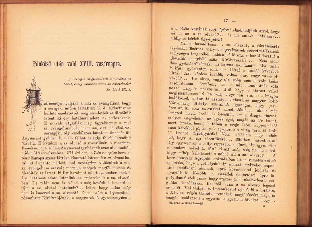 Szent beszédek (Exhortatiók) a tanév minden vasárnapjára irta Kalocsay Gyula Alán 1889.