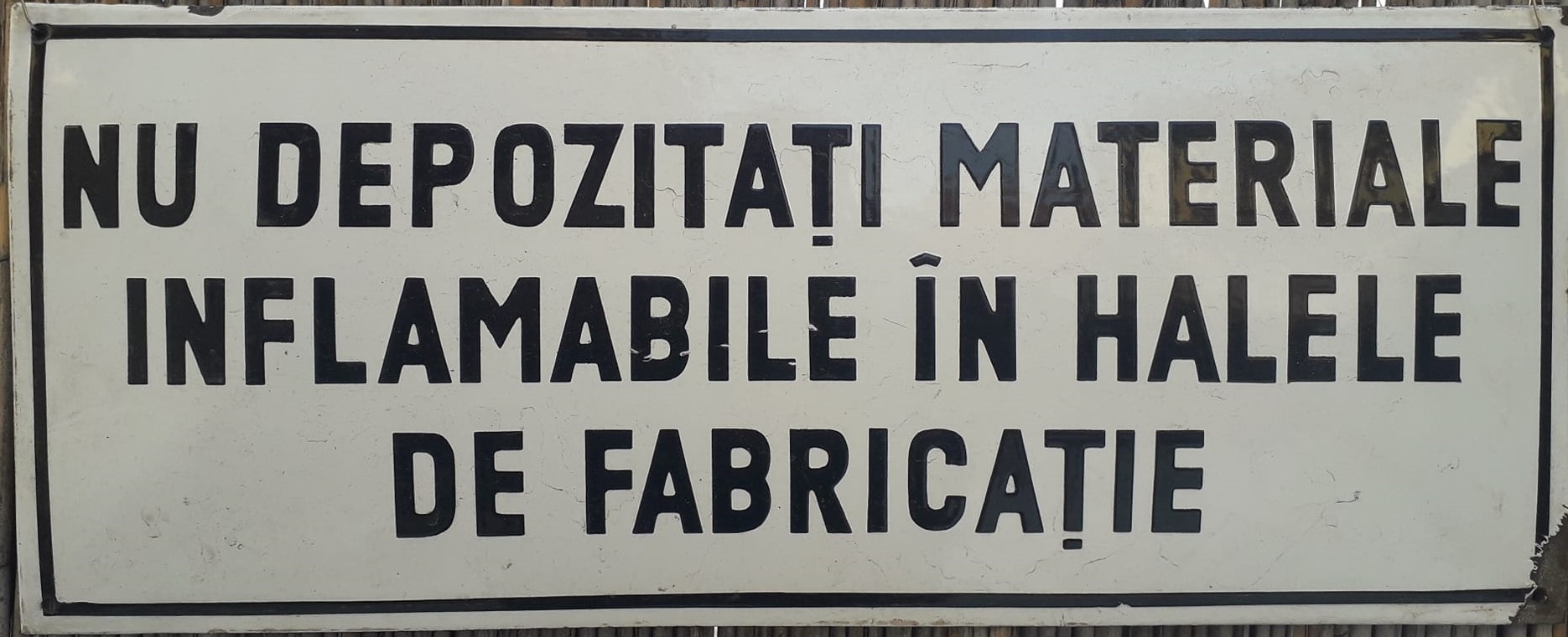 Tablă emailată Nu depozitați materiale inflamabile în halele de producție – protecția muncii