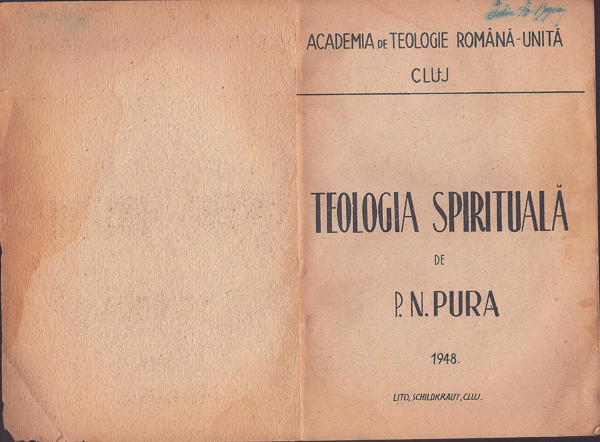 Teologia spirituală de P N Pura, Academia de Teologie Română Unită, 1948, Cluj.