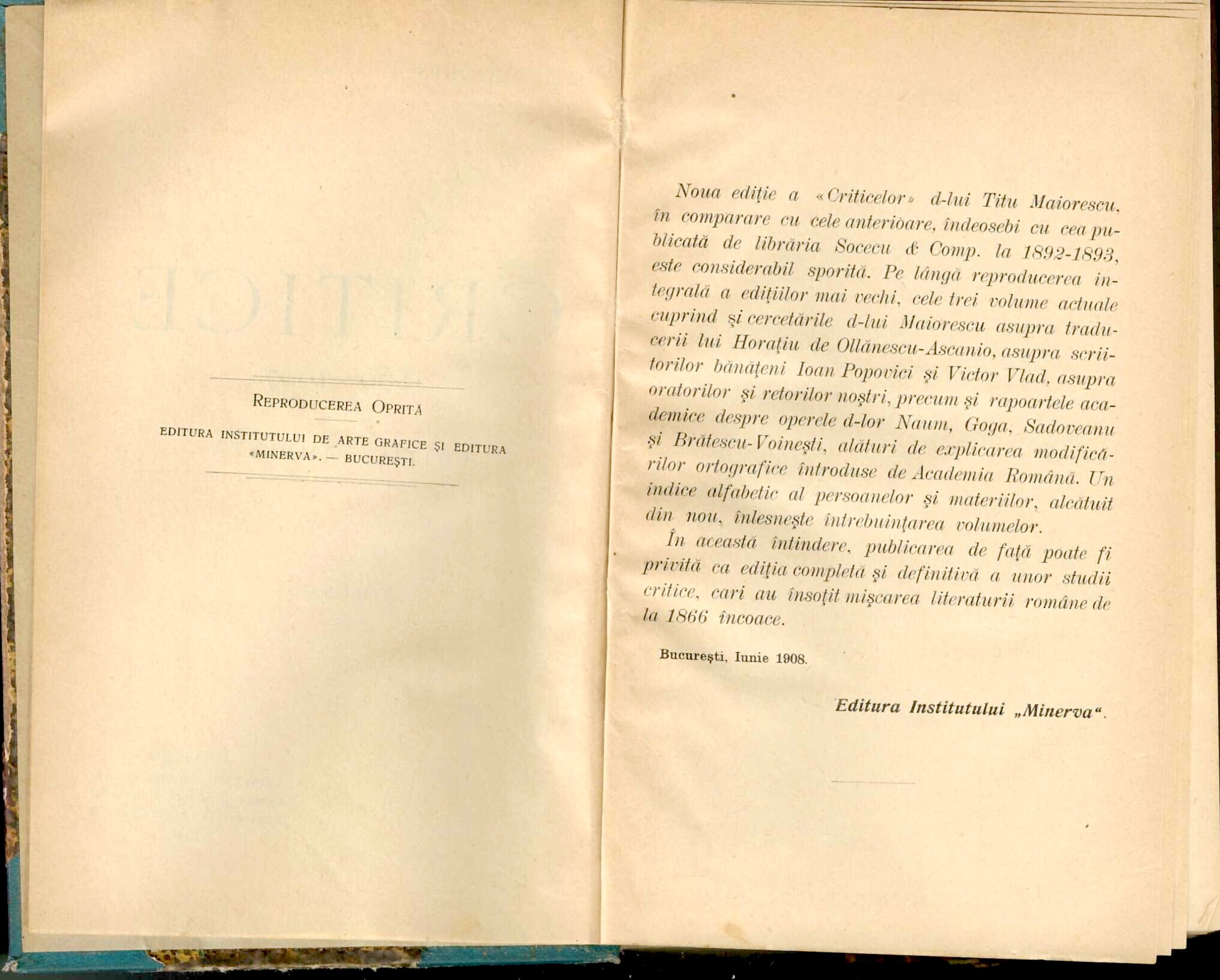 Titu Maiorescu, Critice 1866-1907, ediție completă, volumele I-III, 1908.