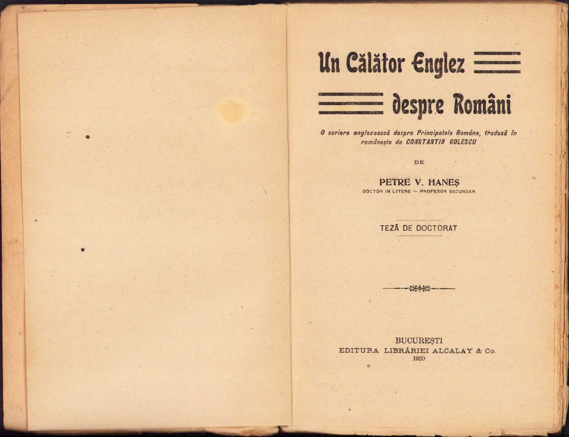 Un călător englez despre români, o scriere englezească despre Principatele Române, tradusă în românește de Constantin Golescu, de Petre Haneș, teză de doctorat, 1920.