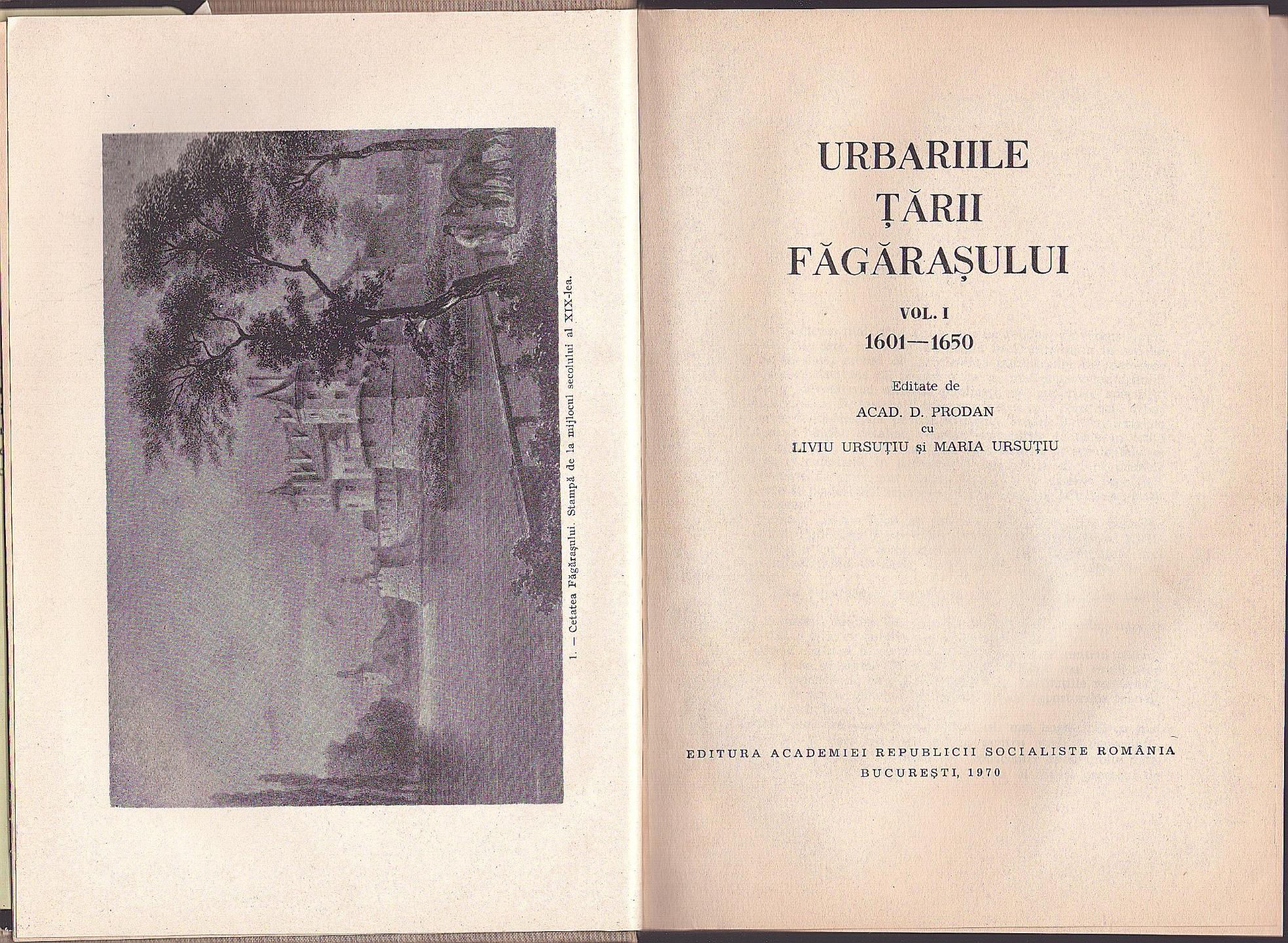 Urbariile Țării Făgărașului, volumul I, 1601-1650 editate de academician David Prodan cu Liviu Ursuțiu și Maria Ursuțiu, 1970.