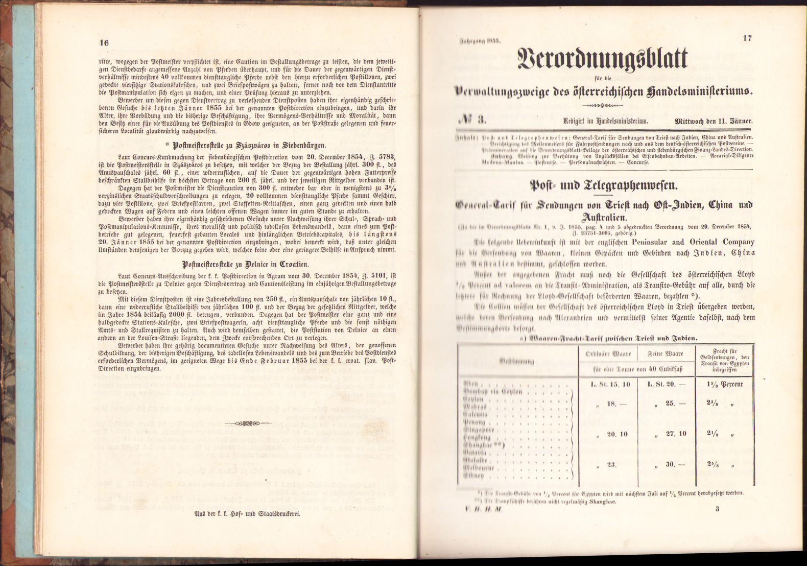 Verordnungsblatt für die Verwaltungszweige des Österreichischen Handelsministeriums, toate numerele anului 1855, 1856, Wien.