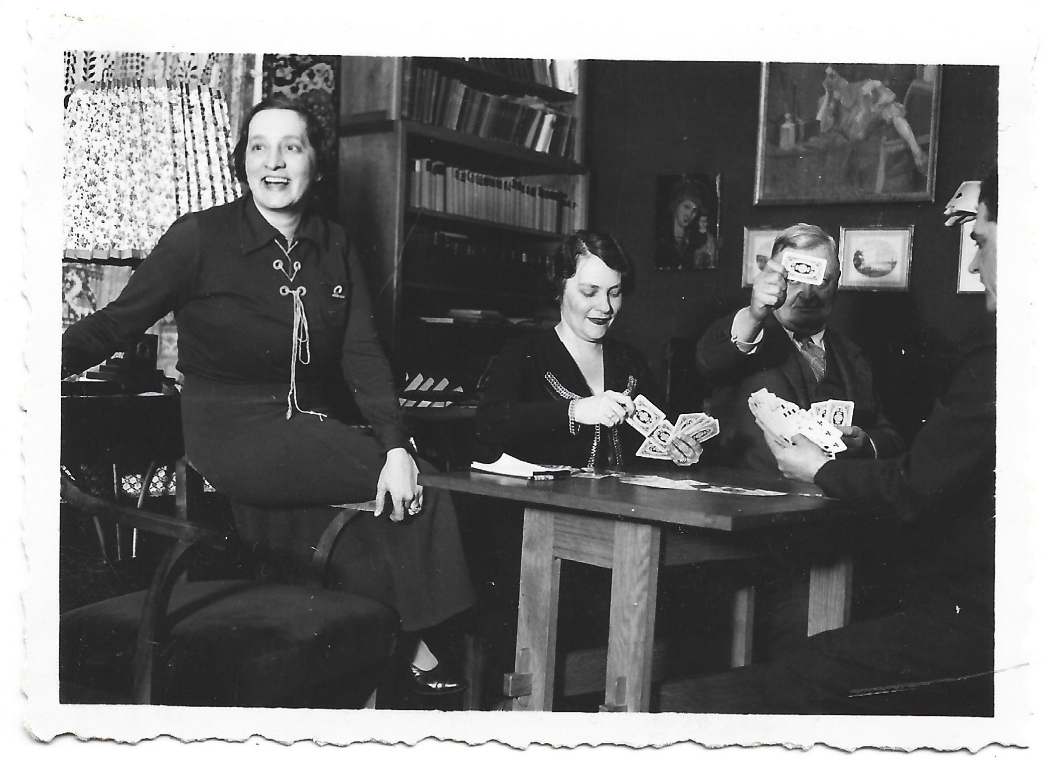 Veturia Goga cu prietenii săi jucând cărți la Ciucea, anii 1930.
