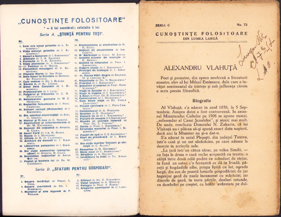 Viața lui Alexandru Vlahuță de V M Sassu, 1938.