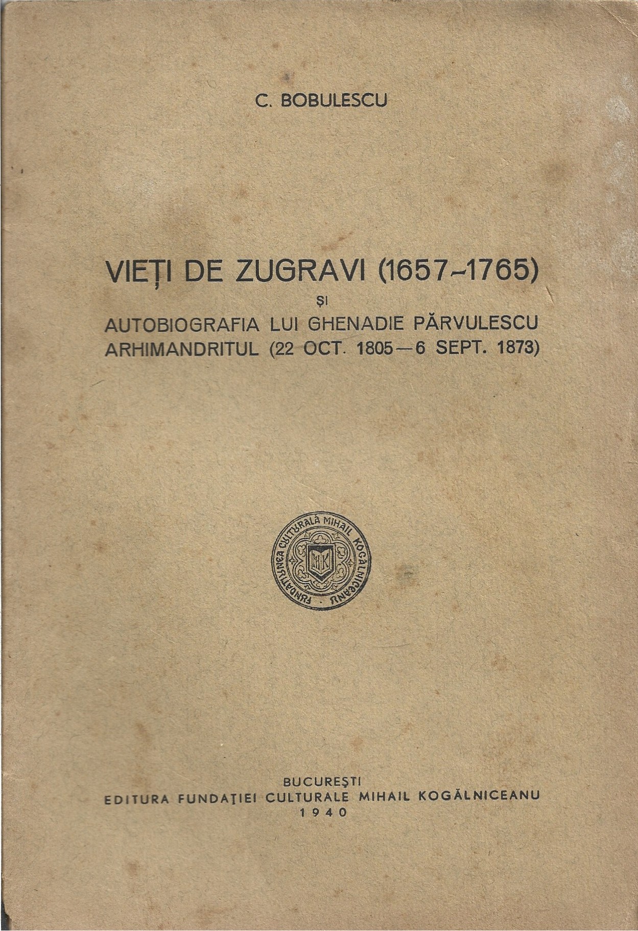 Vieți de zugravi (1657-1765) și autobiografia lui Ghenadie Părvulescu Arhimandritul (22 oct 1805 – 6 sept 1873) de Constantin Bobulescu, 1940.