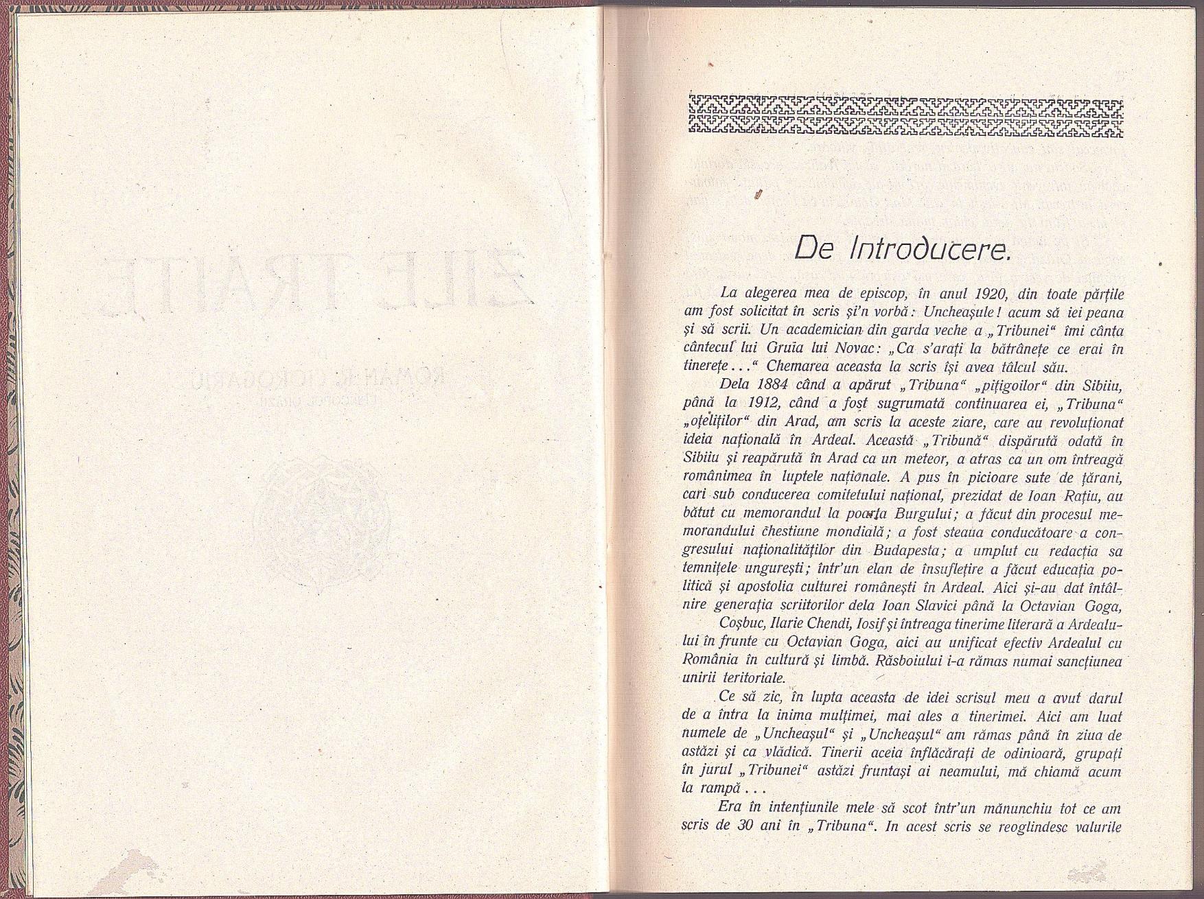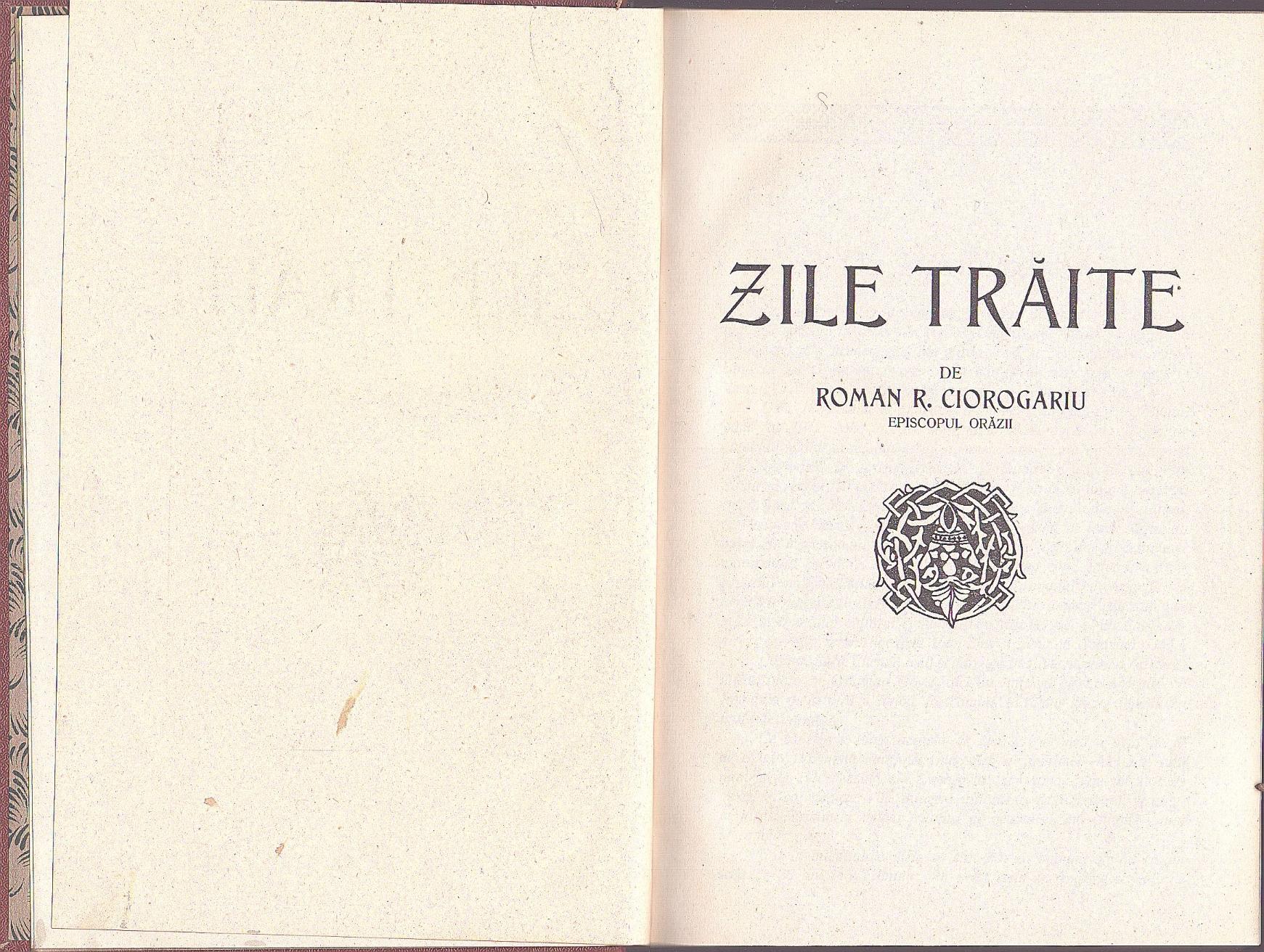 Zile trăite de Roman R Ciorogariu Episcopul Orăzii, 1926, Oradea.